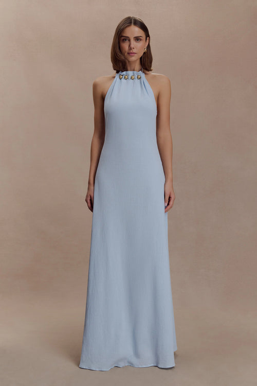 ER Abeda Cotton Maxi Dress With Hardware - Pale Blue