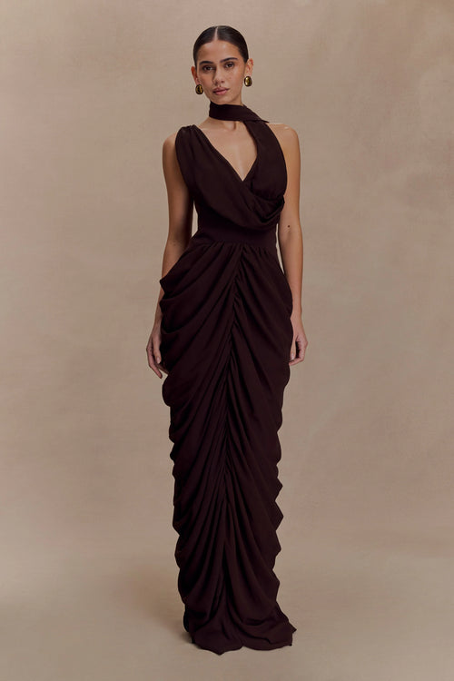 ER Ashford Asymmetrical Slinky Maxi Dress - Chocolate -