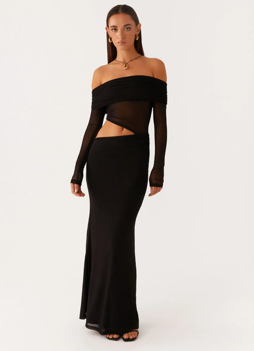 ER Dalia Off Shoulder Satin Maxi Dress - Black